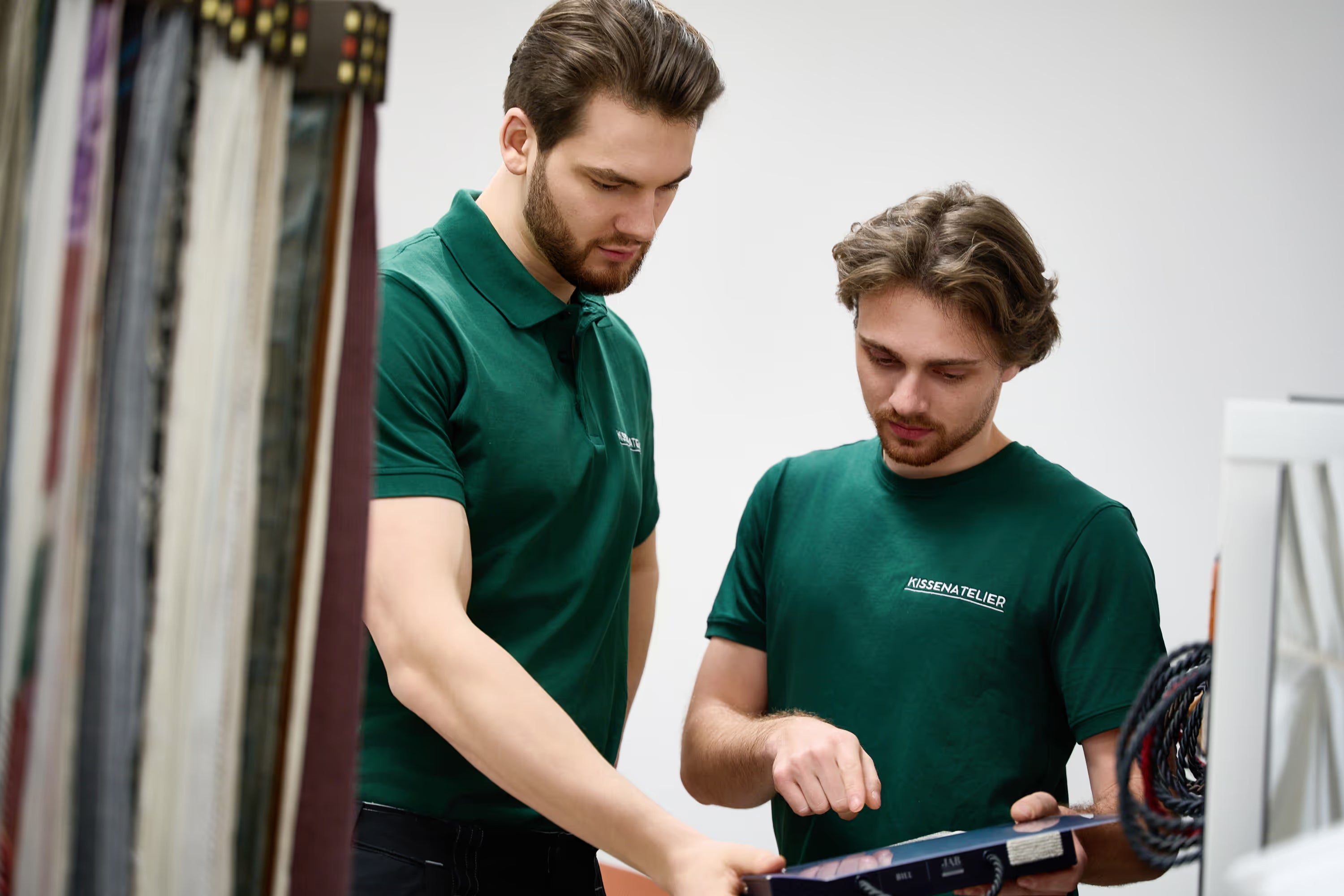 Wir sind Hannes & Moritz, die kreativen Köpfe hinter dem Kissenatelier. Mit Leidenschaft und Liebe zum Detail entwerfen und fertigen wir unsere Kissen selbst – von der ersten Skizze bis zum letzten Stich.